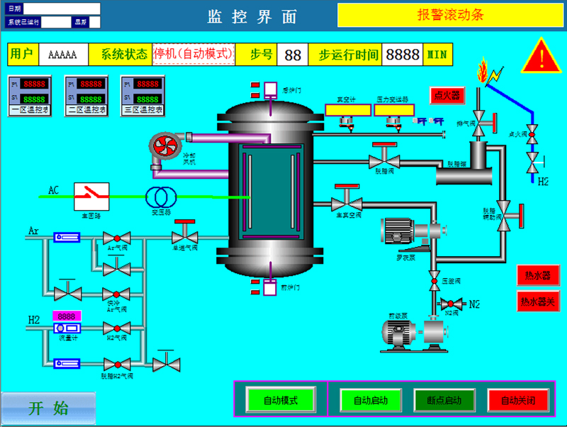 通過我們公司的系統可以時時監控水壓、電壓、氣壓。能按工藝自動完成生產。有效的節省人力、物力等方面的成本。提高了產品的合格率。為公司創造更大的利潤。我們的軟件廣泛用于高真空釬焊爐、石墨化爐、碳化爐、TP爐、熔煉爐、碳化硅燒結爐、金屬鉭片爐、鎢絲高溫真空爐、藍鎢爐等